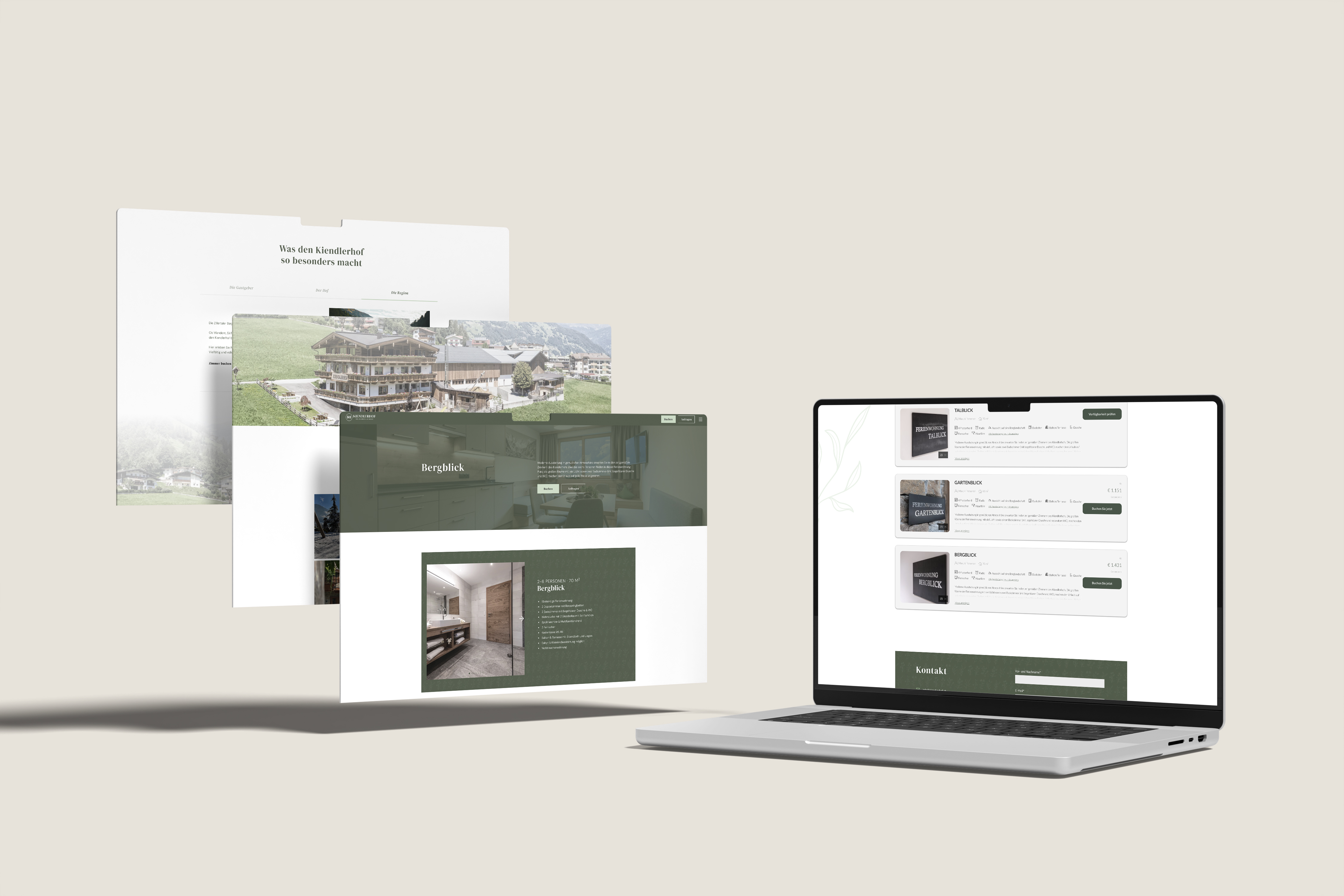 For the Kiendlerhof, a traditional farm offering modern holiday apartments in Schwendau in the Zillertal, an elegant, trustworthy, and user-friendly digital presence was developed. The goal was to translate the farm’s core values—tranquility, closeness to nature, and genuine hospitality—into a digital experience, while providing visitors with a simple and intuitive way to explore the offerings and make a booking.